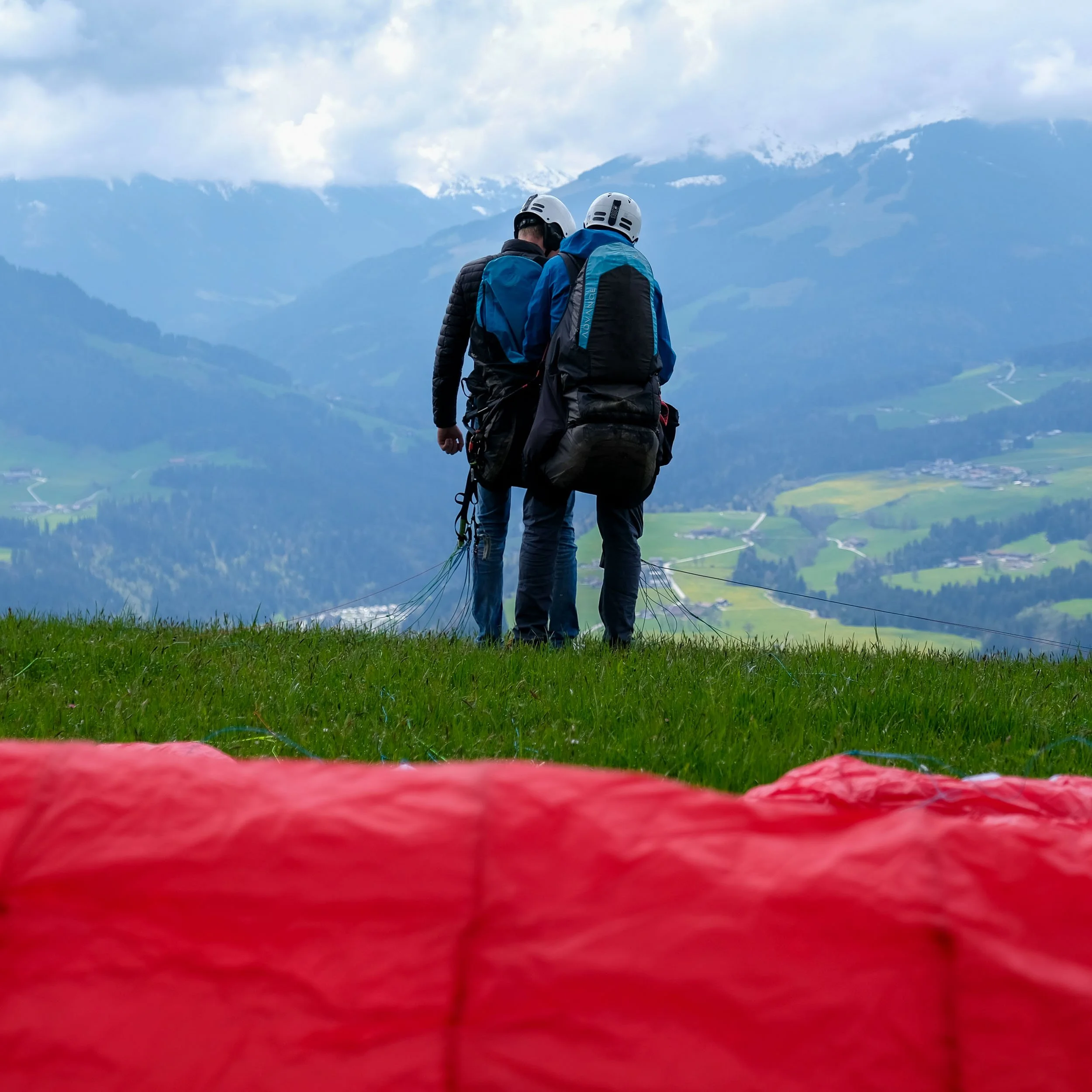 Am zweiten Tag liegt der Fokus auf eigenständigen Starts und Landungen. Du übst wiederholt Vorwärts- und Rückwärtsstarts mit dem Tandemschirm und lernst, wie du den Passagier am Start sicher einweist. In der Praxis fliegst du deine ersten kurzen Tandem-Übungsflüge mit anderen lizenzierten Kursteilnehmern im „Pilotwechsel“. Nachmittags vertiefen wir die Theorie zu Aerodynamik und Sicherheit.